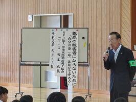その為の講話をNPO法人宮崎県防犯設備士協会の防犯アドバイザーである西本正弘さんにしていただきました。