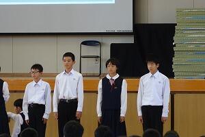 三松中学校の伝統を引き継ぎつつ、みなさんが掲げた公約が実践できる行動力を期待しています。