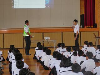 金曜日は火山噴火を想定した避難訓練が行われました。避難訓練の後は宮崎県防災士ネットワーク西諸県支部の大山支部長様をお招きして講話をしていただきました。講話では地球の構造や火山と地震の仕組みなどを分かりやすく説明していただき、実際に自然災害の大きさや怖さ、地震に対する心構えを学びました。