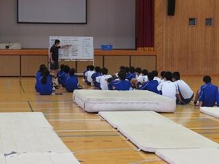 校長先生から、「自分や仲間を信じて最後まで戦ってほしい。特に練習(これまでの経験)を思い浮かべ、自分を信じた時に底力を出すことができる。三松中生徒の健闘を祈ります」とお話がありました。