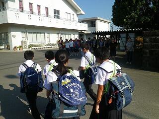 1年生全員が無事宿泊農業体験学習から帰ってきました。全員がそろったところで「退村式」が行われました。式ではお世話になった農家の皆さんからのあいさつ、生徒からは体験学習に対するお礼の言葉を交わし、名残惜しさを残しながら全てのプログラムを終えました。