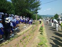 今日は悪天候で延期になっていた1年生による国道沿いの花壇植栽を行いました。場所は国道268号線の金鳥井交差点付近の花壇です。厳しい暑さの中でしたが、水分補給をこまめに行いながら、ペンタス、ポーチュラカ、サルビアなどの花々をみんなで植えていきました。少しでも国道を通るドライバーの皆さんがホッとなれる風景になればいいですね。