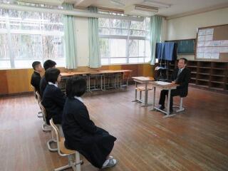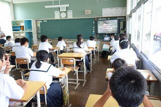午後からの授業では、中学生との交流会で、生徒会から三松中学校の説明や全国いじめ問題子供サミットの報告を兼ねて、中学校でのいじめ問題の取組を紹介しました。