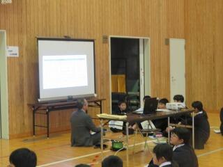 立志式後は、NTTドコモ小林店長 本田利泰様に「将来に向けて今やっておくべきこと」題して、講話をしていただきました。「進化」をとげる人間、20年後の仕事等や将来に向けて、コミュニケーションの必要性について楽しく話していただきました。将来の自分に向けて、しっかり考える立志式になったと思います。講師の本田様に感謝申し上げます。また、寒い中、来校していただきました、来賓・地域の方々に深謝いたします。