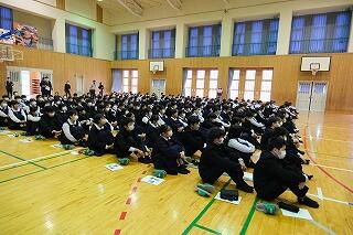 大清掃で学校をきれいに掃除した後、清々しい雰囲気の漂う体育館で式が執り行われました。式の前には、部活動の大会や1年間皆勤賞の表彰が行われました。