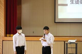4月16日(火)の5、6校時には、86名の新入生を歓迎する対面式が行われました。対面式は2部構成で行われ、前半に「生徒会活動について」、後半に「部活動紹介」が行われました。