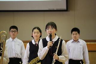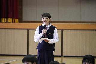 新入生代表誓いの言葉を述べてくれた武田優愛さん、堂々として、落ち着いた態度で発表をしてくれました。また、在校生を代表して生徒会の上杉湘さんも学校目標を用いて優しい言葉を述べてくれました。