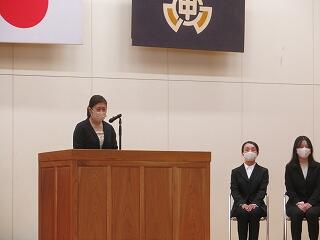 校長先生からの激励の言葉をいただき、生徒会副会長の芝田 実歩さんからの応援メッセージをもらい、男子バレー部キャプテンの佐藤 樂和さんが代表で選手宣誓を行い、熱意のこもった壮行会は終了しました。