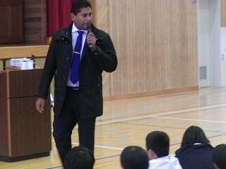 昨日は1年生と3年生を対象にした「キャリア教育講演会」が開かれました。講演会では、以前、2年A組で行われた英語科の研究授業で講師をしていただきました、スリランカ出身でえびの市在住のスジーワ・ウィジャヤナーヤカさんを再びお招きし、これからの目標に対する心構えを中心に熱く語っていただきました。スジーワさんは自らの目標を叶えるためにいろんな努力をして、野球審判員という夢を叶えて甲子園球場の舞台に立っています。
