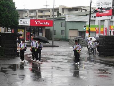 台風7号の影響で昨夜から雨と風がやや強い状況ですが、今日は通常通りの登校としています。今朝も雨と風の中で生徒は元気に登校してきました。明日からの3日間は第2回学習評価テストです。テストに備え今日も平常心で学習に取り組みましょう。
