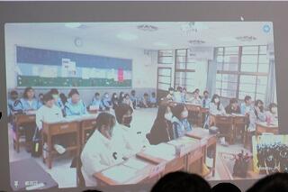3月7日(木)の4校時、5校時に2年生及び1年生による台湾の中学生とのオンラインによる国際交流授業が行われました。
