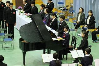 最後になりましたが、地域の皆様にお礼を申し上げたいと思います。卒業生が三年間無事に過ごすことができましたのも、登下校時や日常的な地域安全活動のお陰と思います。卒業生は、これからも自分の「夢」実現のため、頑張っていくことと思いますので、引き続き地域でのご支援・ご協力をお願いいたします。本当にありがとうございました。