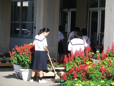 生徒たちが朝の活動をがんばっていました。とても気持ちのいい朝を迎えることができています。