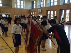 夏休みの登校日を利用して、PTA地区対抗親子バレーボール大会を開催しました。