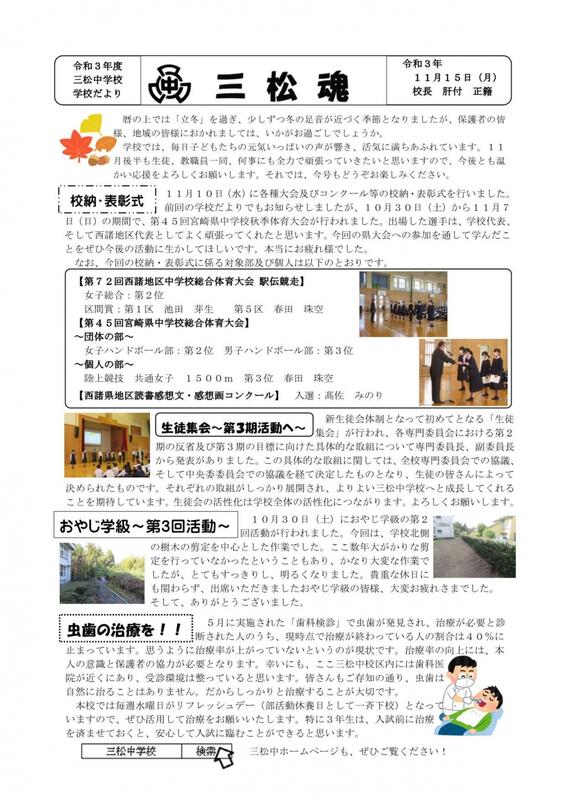 学校だより「三松魂」の令和3年11月号①を掲載しました
