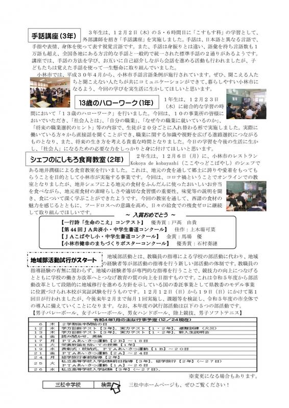 学校だより「三松魂」の令和4年1月号②を掲載しました