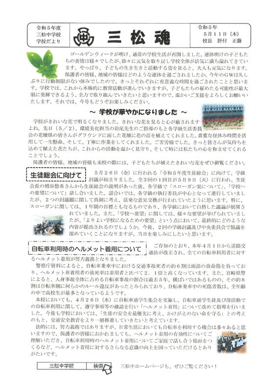 本Webページの著作権は、三松中学校が有します。無断で、文章・画像などの複製・転載を禁じます。