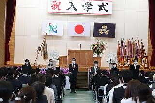 歓迎の言葉で、生徒会長の津奈木美咲さんが、1年生と一緒に力を入れていきたいことを2つ挙げていました。「気持ちのよいあいさつ」と「集団行動の徹底」です。活気のある学校、よりよい学習環境を全校生徒でつくっていきたいという思いを在校生を代表して伝えていました。
