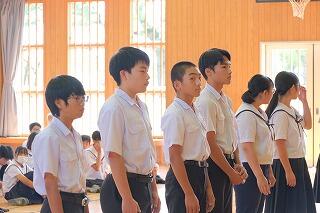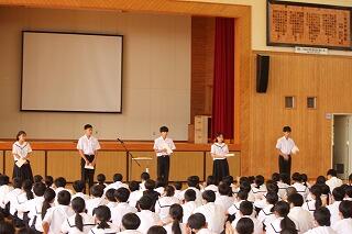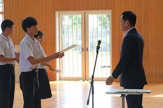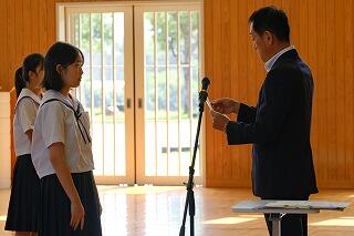 新生徒会役員、全校専門委員長・副委員長のみなさん、これからは、みなさんがその役割を引き継ぎ、この三松中学校を引っ張っていくことになりますので、一人一人が誇りと自覚そして、自信をもち、全力で取り組んでほしいと思います。よろしくお願いします。