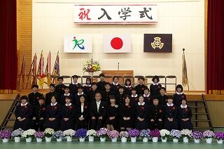 式の後、クラスごとにマスクをしたまま整列を行い、撮影の時だけ一瞬マスクを外す、という感染症対策をとりながら写真撮影を行いました。2,3年生は準備や清掃、片付けをてきぱきと行い、先輩らしく新入生を見守る姿も頼もしく感じられました。