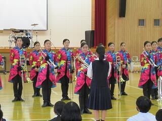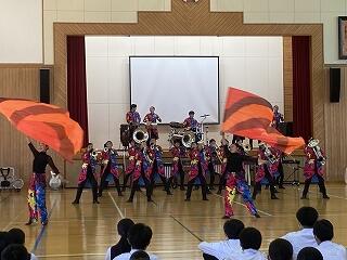 鑑賞教室でマーチングバンド演奏を鑑賞しました