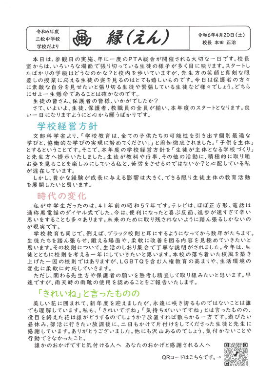 本Webページの著作権は、三松中学校が有します。無断で、文章・画像などの複製・転載を禁じます。