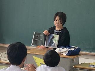本日は、小林市が力を入れている「ブックスタート」関連ということで、市の広報の方が中学生の読み聞かせの実態を知りたいとのことで来校されました。