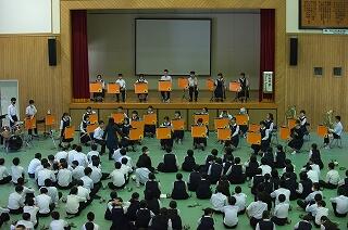 最後は、吹奏楽部が各学級の自由曲を中心に演奏ました。スライドで各学級の合唱練習風景が放映されるなど、これまでの取組を思い出させる素晴らしい演出がありました。