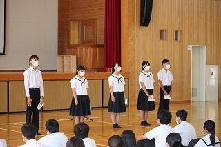 新生徒会役員、全校専門委員長・副委員長のみなさん、これからは、みなさんがその役割を引き継ぎ、この三松中学校を引っ張っていくことになりますので、一人一人が誇りと自覚そして、自信をもち、全力で取り組んでほしいと思います。よろしくお願いします。