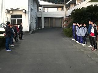 宮崎県中学校秋季体育大会は予定どおりの日程で進んでいます。今朝は勝ち残っている男子バレーボール部が試合会場に向けて学校を出発しました。ただいまベスト4。県大会優勝に向けて全力で戦ってほしいものです。
