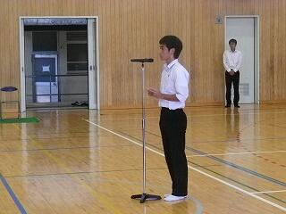(各部抱負は、男子バレーボール部→陸上競技部→女子バレーボール部→男子ハンドボール部→剣道競技→硬式テニス競技→弓道競技→女子ハンドボール部→女子ソフトテニス部→男子ソフトテニス部の順で発表しました。)