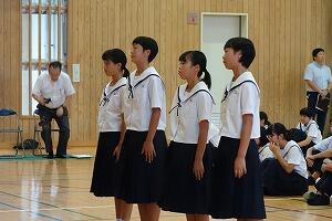 夏休み前の大会について1学期前半終了の集会で、夏休み中に行われた大会について1学期後半開始の集会において校納・表彰式が行われました。(校納)