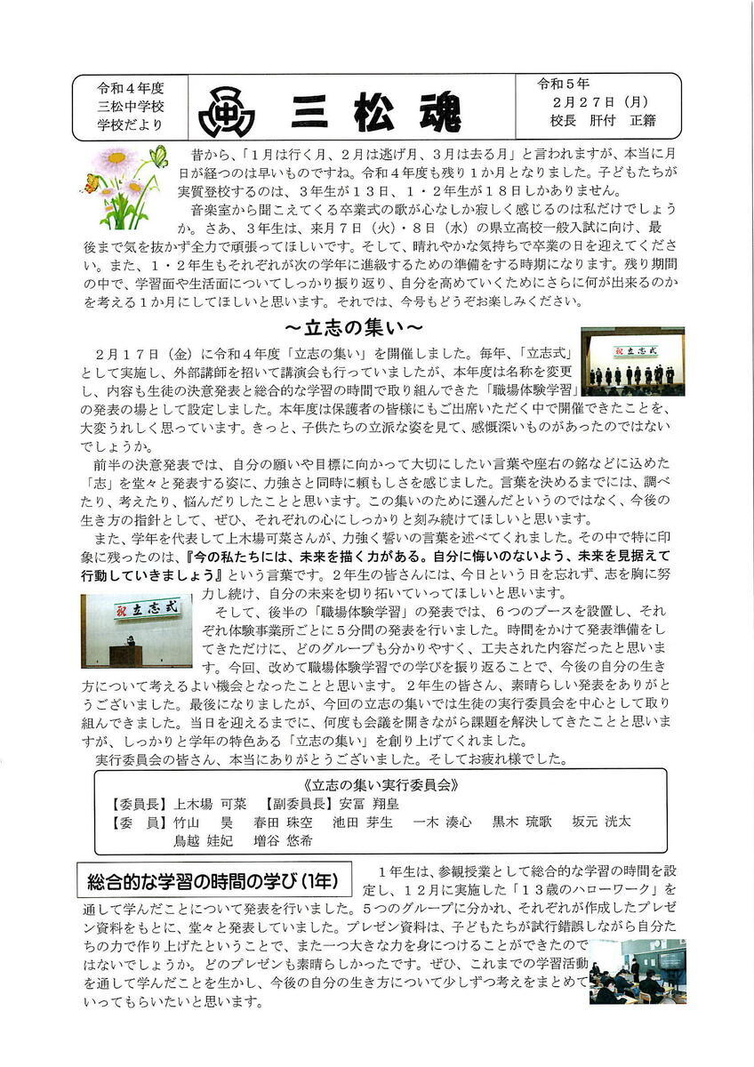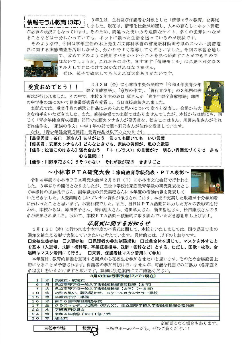 本Webページの著作権は、三松中学校が有します。無断で、文章・画像などの複製・転載を禁じます。