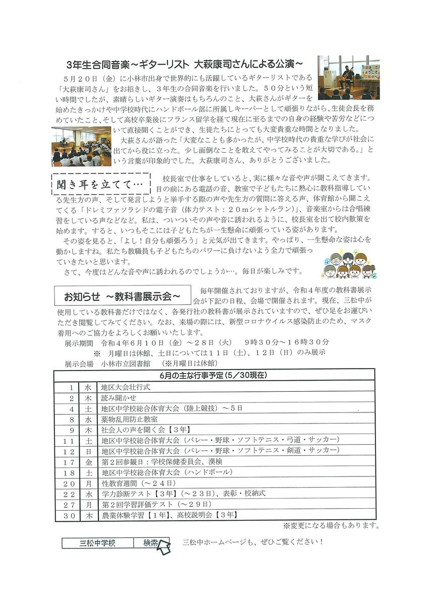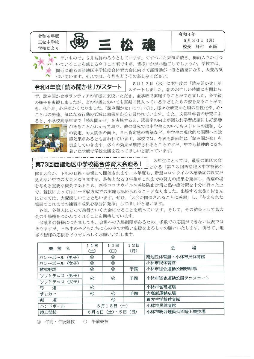 本Webページの著作権は、三松中学校が有します。無断で、文章・画像などの複製・転載を禁じます。