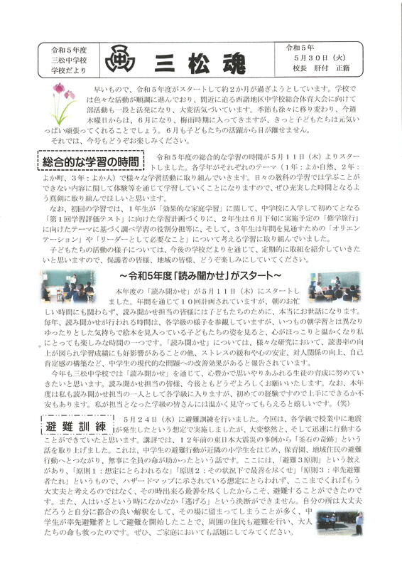 本Webページの著作権は、三松中学校が有します。無断で、文章・画像などの複製・転載を禁じます。