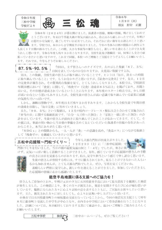 本Webページの著作権は、三松中学校が有します。無断で、文章・画像などの複製・転載を禁じます。
