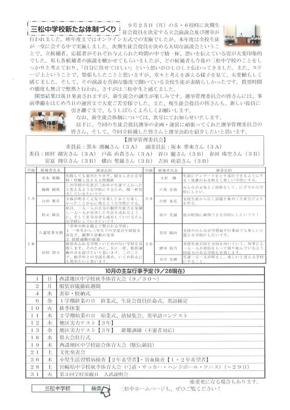 学校だより『三松魂」9月28日号を掲載しました