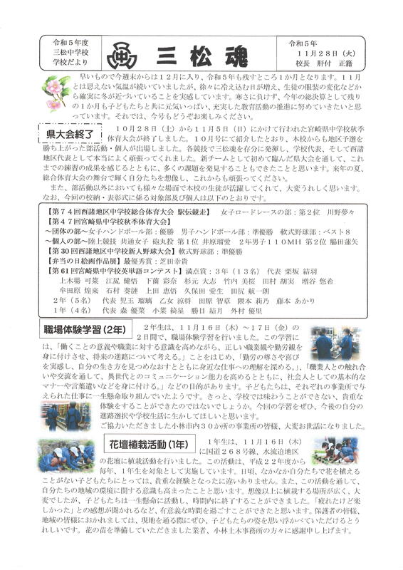 本Webページの著作権は、三松中学校が有します。無断で、文章・画像などの複製・転載を禁じます。