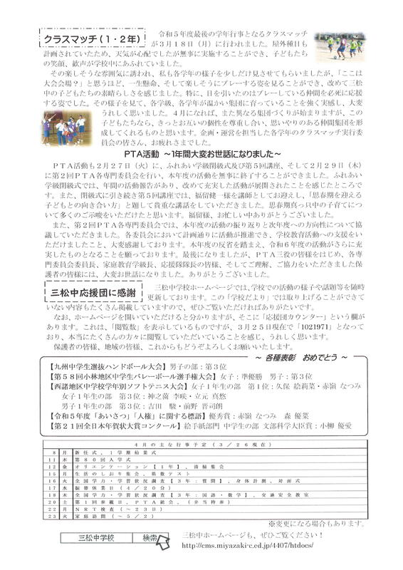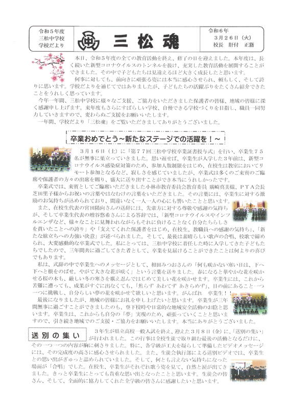 本Webページの著作権は、三松中学校が有します。無断で、文章・画像などの複製・転載を禁じます。