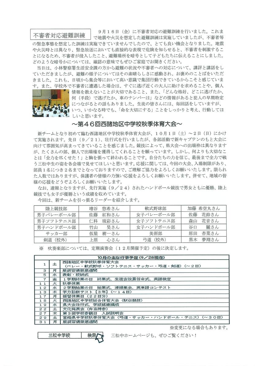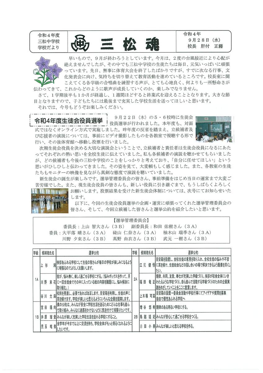 学校だより「三松魂」令和4年9月28日号が発行されました。