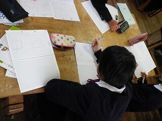 グループで図の違いについて話し合いましたが、同じ物体とあって最初はなかなか意見が出ませんでしたが、少しずつ違いに気づき、長さや見方、それぞれの図で書き方違うなどの意見が出ていました。