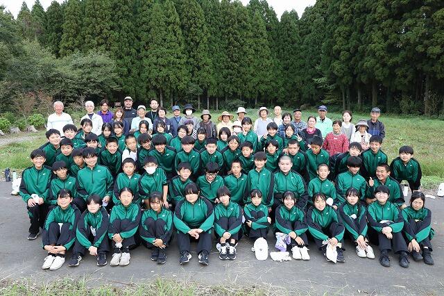 11月19日(火)は、鹿児山地区にある「おてらんば展望台」近くで栽培している「赤そば」の収穫体験に1年生が参加しました。鹿児山地区の小久保区長をはじめ、地域の皆さまなど総勢100名ほどの方々が集まり、鎌をお借りしながら収穫作業を行いました。地域の皆さまの丁寧な準備・アドバイスのおかげで貴重な体験をすることができました。活動後は赤そばとそば粉を用いて作ったクッキーを振る舞っていただき、生徒達も大満足でした。地域の方々との世代を越えた交流がふるさとを思う気持ちにつながっていってくれることを期待したいです。