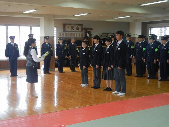 11月26日(火)に年末年始特別警戒取締隊「ひなもり隊」の出隊式が小林地区交通安全協会で行われました。高原中からも生徒会役員の4名が代表で出席しました。代表で出席した4名が交通安全・防犯宣言を元気よく読み上げてくれました。