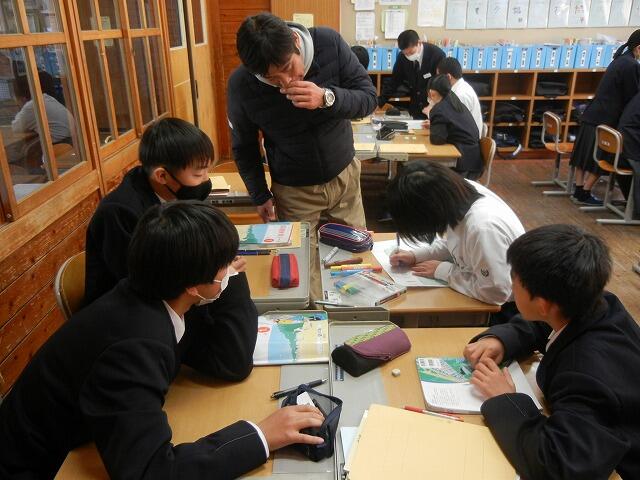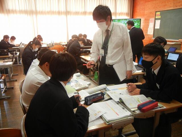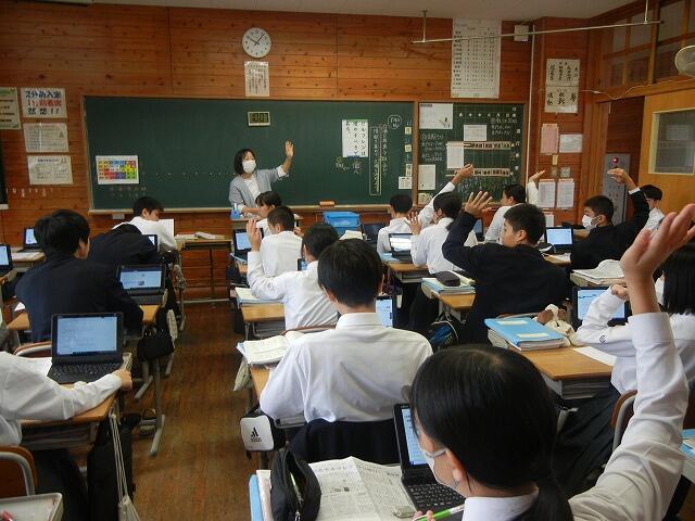 高原中では校内研修の一環で一人一研究授業を実施しています。生徒の学力向上に向けて先生方も授業力向上に取り組んでいます。