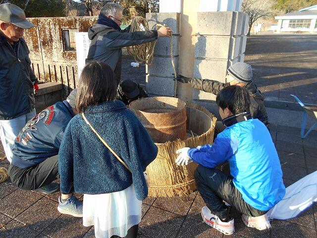 12月12日(木)に門松づくりの竹の切り出しを行いました。昨年に引き続き前PTA役員のNさんのご協力をいただきました。12月15日(日)には門松づくりを朝8:00から行いました。昨年よりも飾り付けの材料の提供が多く、多くの飾り付けをすることができました。当日は学校評議員のMさんのご指導を仰ぎながら1時間ほどで門松ができあがりました。皆さんにとって良い年になりますように。