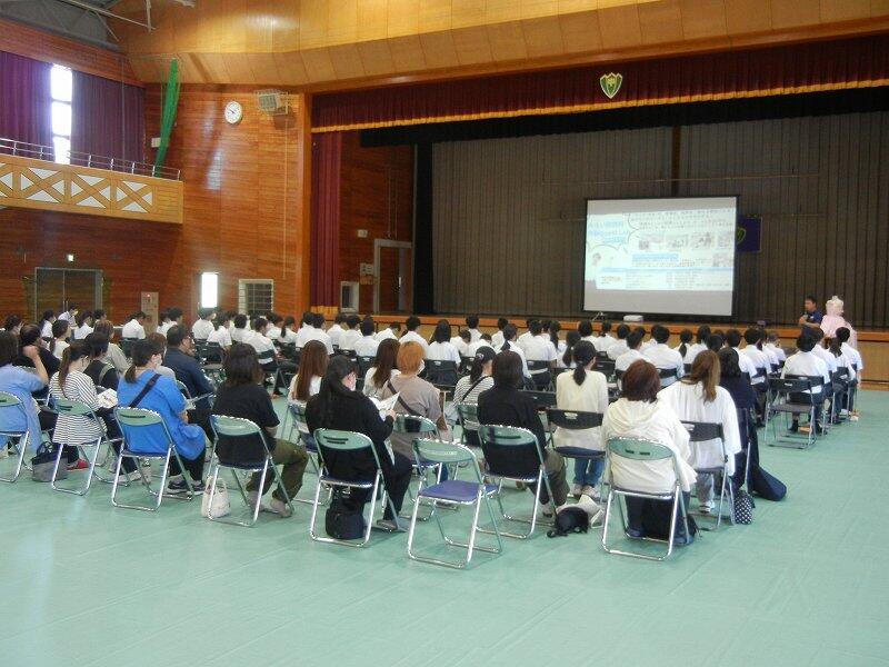 6月5日(木)は、午前中に高校説明会、午後に学校参観日が行われました。お忙しい中、ご参加いただきありがとうございました。高校説明会は後川内中学校と合同で実施し、5つの高校の先生方が学校の魅力、中学校時代に頑張ってほしいことなどを話されました。午後の参観授業はお子さんの学習の様子を見守っていただき、その後の懇談会では、学校での様子や今後の行事に関する説明などが行われました。