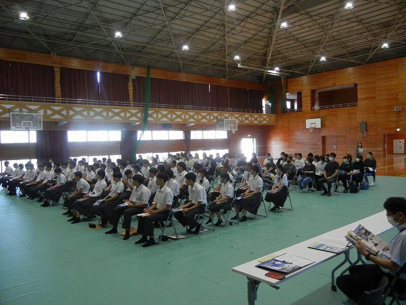 9月26日(金)に2年生の総合的な学習の時間で「職業講話」を行いました。教育・建設業・福祉・農業と幅広い分野から4名の講師をお招きし、お話をしていただきました。仕事の内容やその仕事を選んだ思いなど講師の熱い思いを聞くことができ、生徒からも質問が出されました。11月に実施する職場体験学習をイメージするとともに、自分の将来の仕事や夢、生き方について考えるとても良い機会になりました。