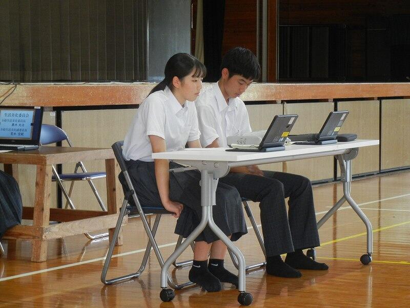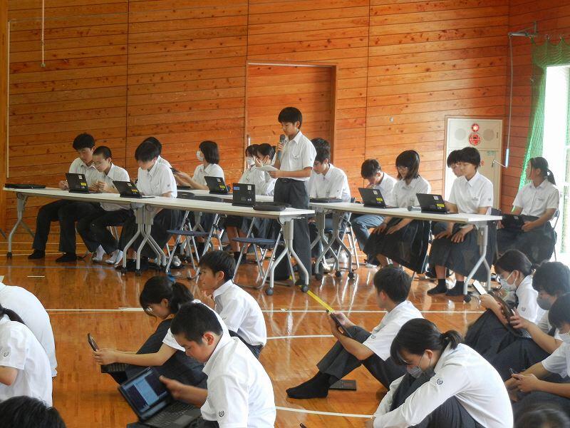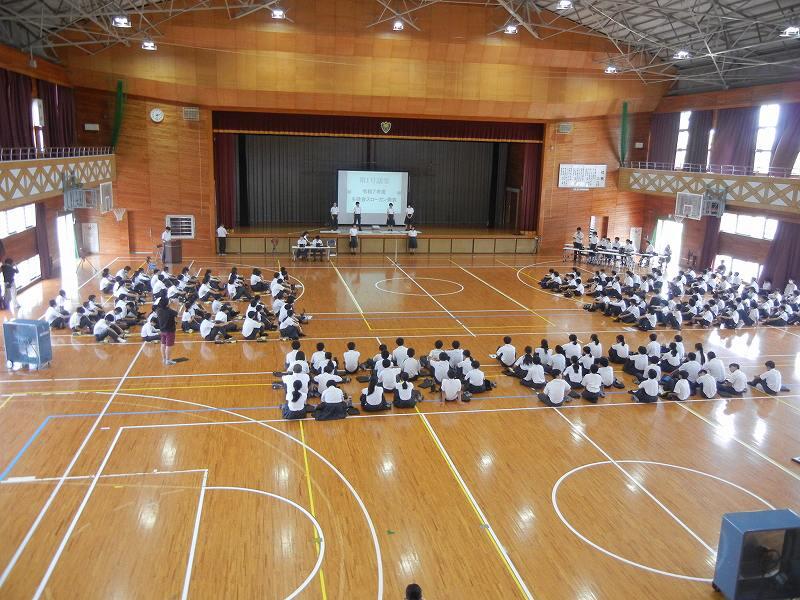 4月14日(月)の5、6校時に対面式・部活動紹介が行われました。前半に生徒会活動、委員会活動についての説明、後半に部活動紹介を行いました。部活動紹介では、各部とも工夫を凝らした紹介があり、1年生もどの部活動に入部するか、参考になったと思います。