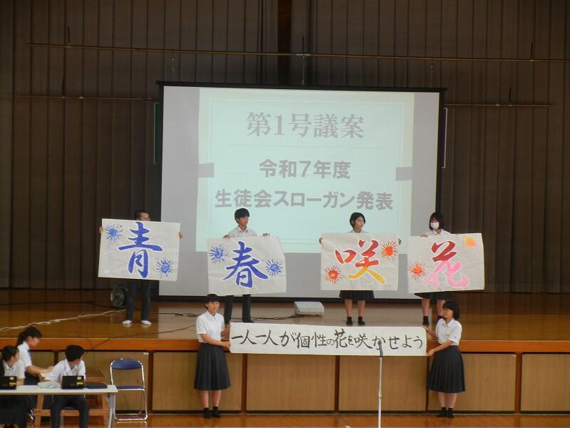 6月13日(金)生徒総会が行われました。生徒会執行部、全校専門委員長・副委員長が当日に向けて準備を進めてきました。生徒会スローガンとして「青春咲花」が紹介され、その後、各委員会の年間計画が説明されました。集中討議では「校歌をしっかり歌う」「異学年交流の機会」について討議され、議長・副議長のスムーズな進行のもと、生徒たちはそれぞれにどうすればよりよい高原中になるかを真剣に考えるいい機会になりました。