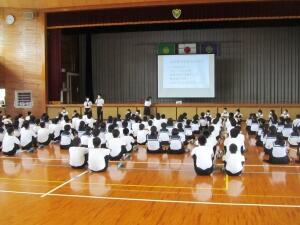 今週生徒集会が行われ、各委員会で取り組む内容が報告されました。